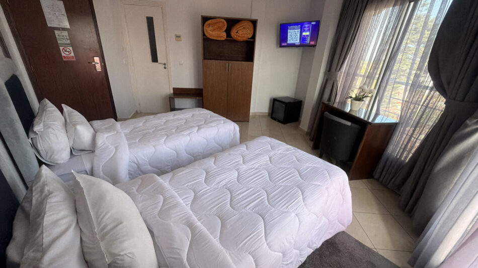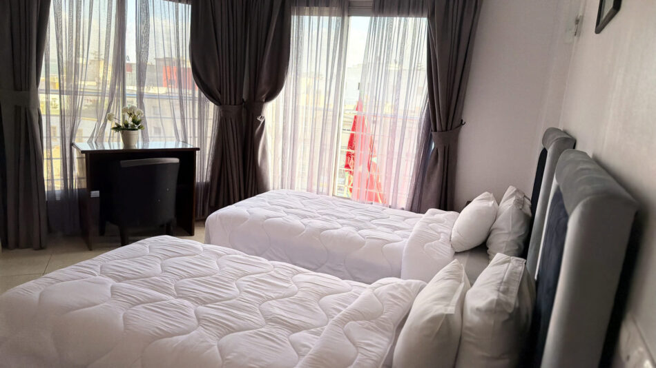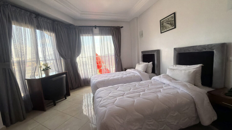 Pensée pour s’adapter à vos besoins, cette chambre polyvalente peut être préparée avec un lit double ou deux lits jumeaux. Idéale pour les couples, amis ou collègues de voyage, elle allie espace, confort et fonctionnalité. Sa décoration élégante crée une atmosphère chaleureuse et apaisante, tandis que ses équipements modernes — climatisation, Smart TV, rangements spacieux et salle de bains privative — garantissent une expérience agréable. Un choix parfait pour un séjour confortable, que ce soit pour une escapade détente ou un voyage professionnel.