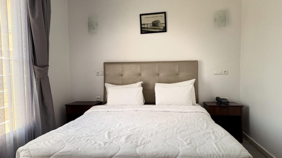 Offrant un équilibre entre confort moderne et charme authentique, la Chambre Simple Supérieure convient aux voyageurs recherchant calme et fonctionnalité. Spacieuse et soigneusement aménagée, elle dispose d’un lit simple confortable, d’une décoration raffinée et d’une atmosphère apaisante. Les équipements modernes — climatisation, Smart TV, connexion Wi-Fi haut débit et salle de bains élégante — assurent un séjour fluide et confortable. Un espace pensé pour le repos et l’efficacité.