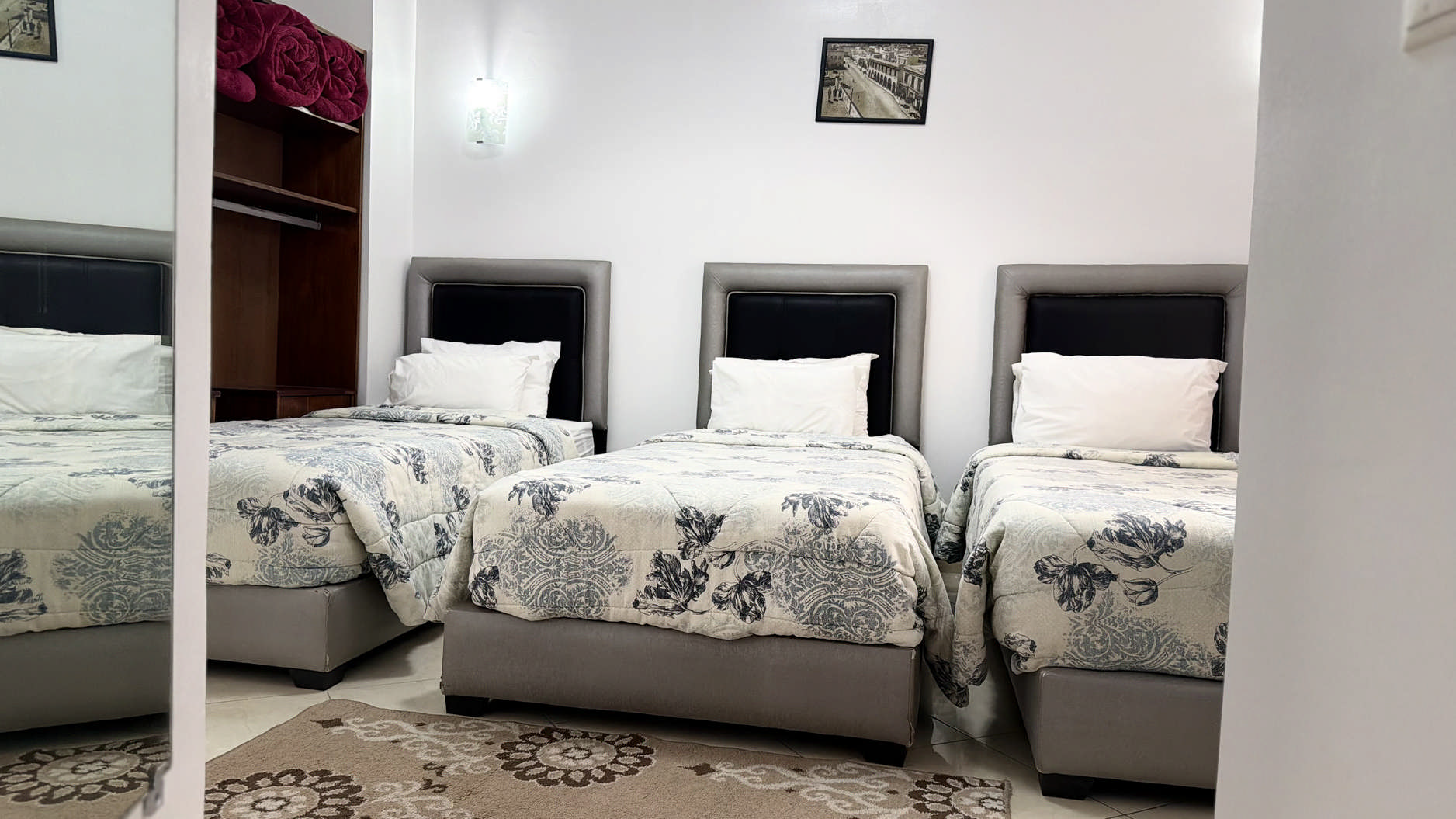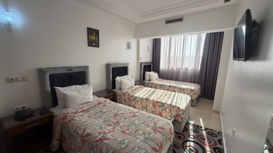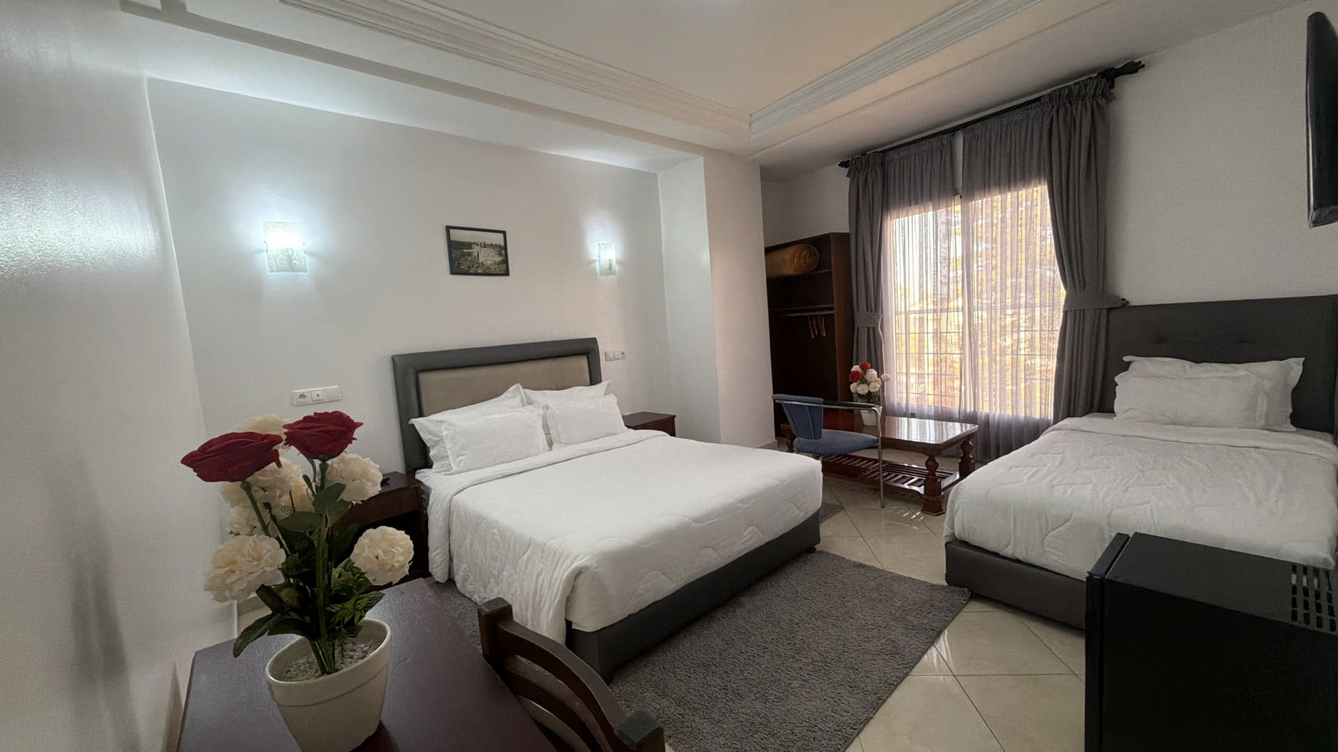 Idéale pour les familles ou petits groupes, la Chambre Triple Standard offre un espace confortable et fonctionnel pouvant accueillir jusqu’à trois personnes. Elle propose une literie de qualité, une décoration apaisante et tous les équipements nécessaires pour un séjour agréable : climatisation, Smart TV, rangements, salle de bains privative et connexion Wi-Fi. Pratique et chaleureuse, cette chambre constitue une solution parfaite pour partager des moments conviviaux en bénéficiant du confort d’un hôtel moderne.